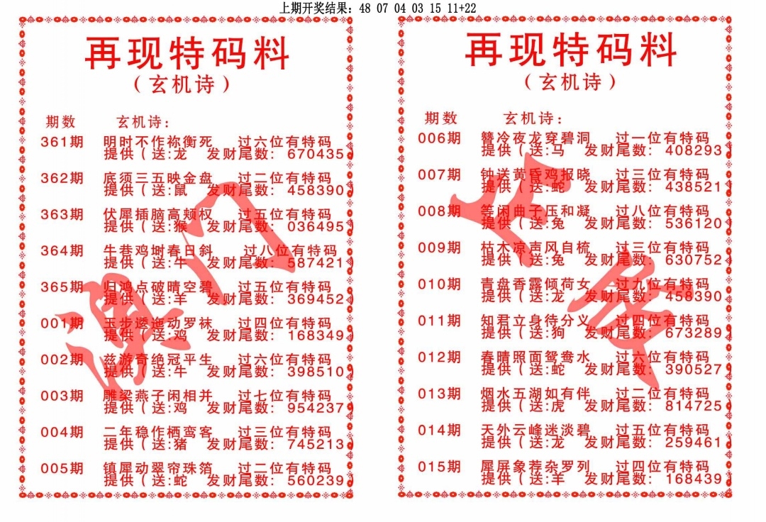 再现特码料